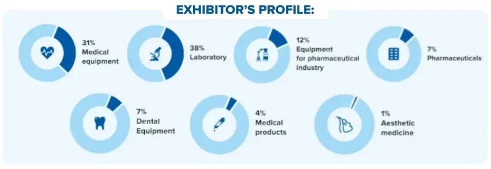 医疗设备、实验室诊断、康复治疗、急救项目、生物医药、医药原材料、医药包装、一次性防护用品、医试剂及耗材、医用敷料及卫生材料等、疗美容器材设备、 家庭保健器材设备等。