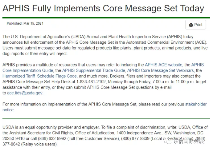 APHIS官网通知地址:
