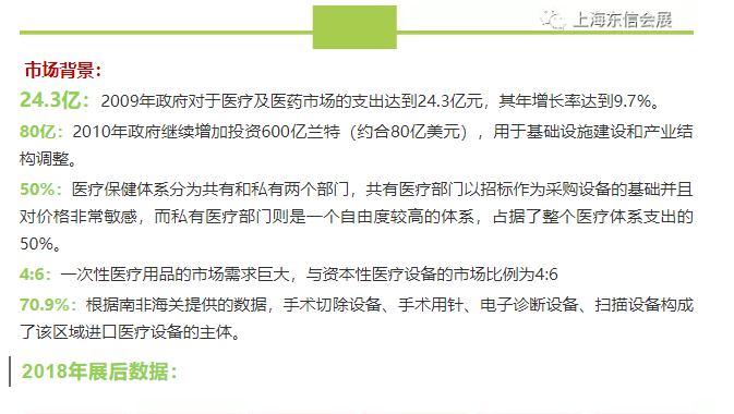l 增加与世界医疗领域的市场人员、政府官员以及私营医疗机构决策者、国际投资机构、私募基金、潜在客户以及供应者、与医疗服务和技术供应商的相互交流。